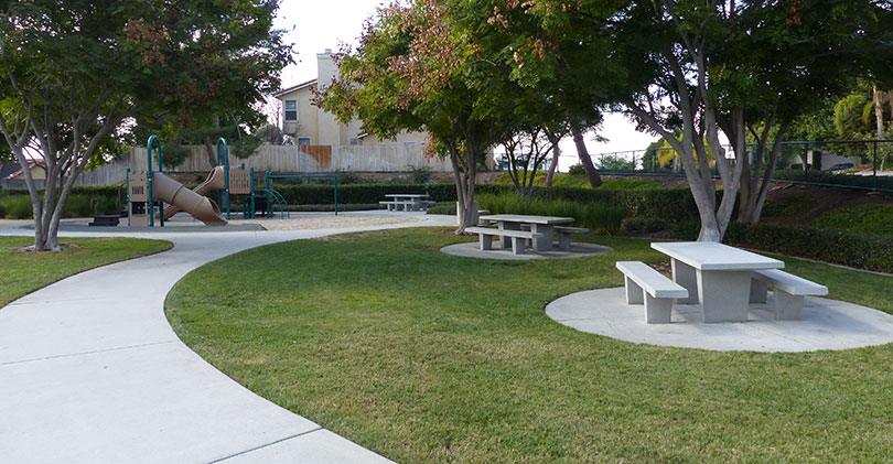 Amigo Park, located at the intersection of Camino Magnifico and Avenida Arana, offers something for everyone. Sitting and picnic areas, shade, play area with sand pit and, flat grassy area for running activities and a walkway great for skateboards and scooters.